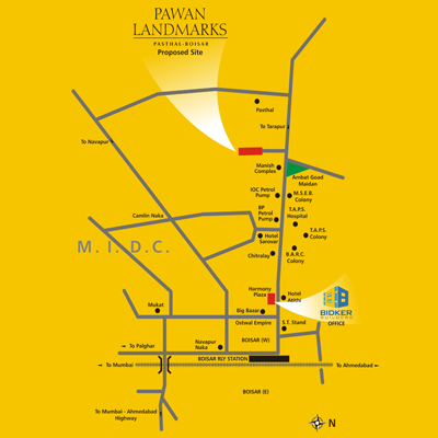 PAWAN LANDMARKS is situated in a picturesque setting where luxury meets convenience. Being opposite the TAPS Residential colony and inside 20 Acres of residential layout and touching 60 Ft. road, the site has the advantage of being surrounded by greenery, hence you get the view of greenery from all the rooms and sufficient breeze and light. PAWAN LANDMARKS is situated amidst well developed commercial / Educational Institutes / shopping complexes / Multiplex / Restaurants along with several corporate houses. There are 4 Petrol Pumps, 4School, 6 Restaurants, 6 Banks, 4 ATMs, 5Hospitals nearby the project. It provides connectivity to Mumbai & Gujarat through road & rail network.